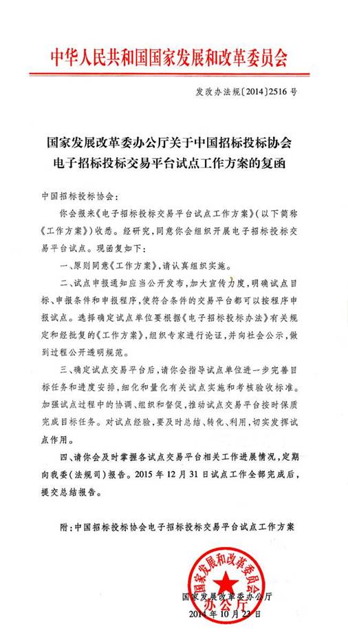 (一)2014年10月,由中國招標投標協會在公開媒介發布試點通知,公開試點申報條件和申報程序,接受試點申報。